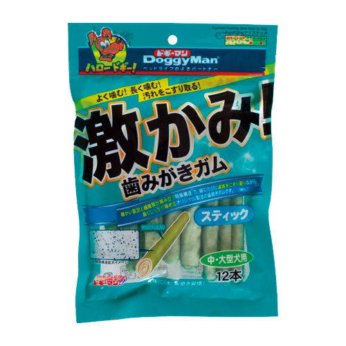 コラーゲンの繊維質と、細かい気泡が複雑に絡み合った特殊な生地を重ねることで、しっかりとした噛み心地を持ちながら、食べきりしやすい独特の質感を実現。特殊構造のガムを噛むことで、歯に絡みついた歯垢をこそげ落とし、また、長く何度も噛むことで、さらに効果的に歯垢を除去し。天然由来の葉緑素クロロフィルを配合。与えやすく、くわえやすいスティックタイプ。