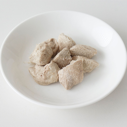 食べて健康に良い豚肉、イギリス原産のケンボロー種のもも肉を使用しています。ふっくらときめ細かい肉質と強いうまみで、嗜好性が抜群です。お湯で戻すと、まるでボイル肉のような色と香りです。