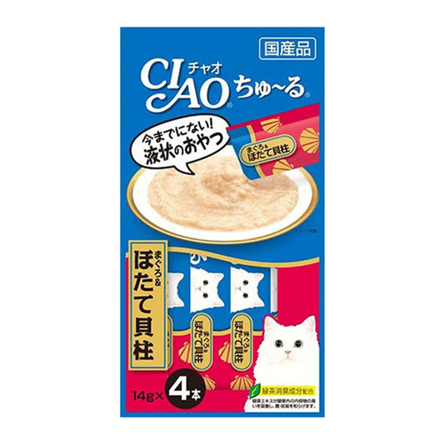 ●原材料:まぐろ、ほたてエキス、ほたて貝柱、糖類(オリゴ糖等)、植物性油脂、増粘剤(加工でん粉)、増粘多糖類、ミネラル類、調味料(アミノ酸等)、ビタミンE、緑茶エキス、紅麹色素●生産国:日本