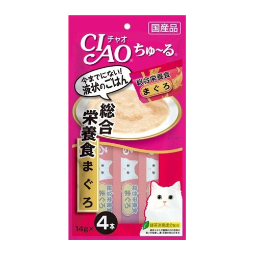 ●原材料:まぐろ、鶏脂、まぐろエキス、タンパク加水分解物、糖類(オリゴ糖)、植物性油脂、増粘剤(加工でん粉)、ミネラル類(Ca、Cu、Mn、Zn、I、Fe、Na、P、Cl、K)、増粘多糖類、ビタミン類(A、E、B1、B2、B6、K、コリン、ビチオン、葉酸)、調味料(アミノ酸等)、タウリン、ビタミンE、紅麹色素、緑茶エキス●生産国:日本