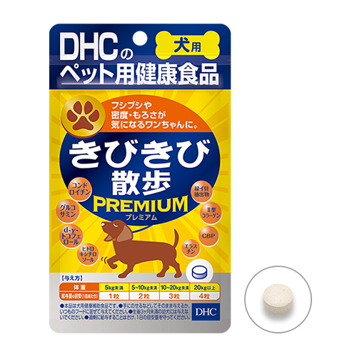 従来のきびきび散歩に配合されていた人気の4成分に加え、緑イ貝抽出物やCBPを配合。プレミアムな働きで、ワンちゃんの関節の健康を守ります。