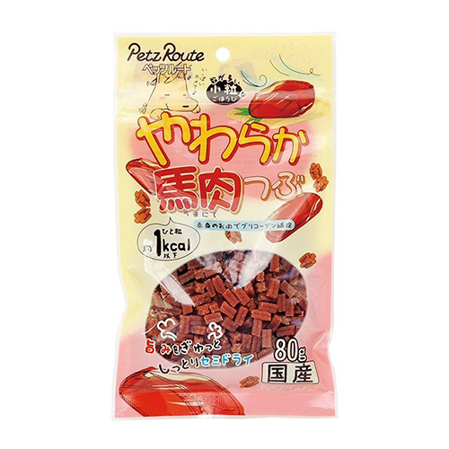 しっとりやわらかく、数が多いので何度も与えられます。馬肉は赤身のお肉でグリコーゲン補給。お口が小さな愛犬におすすめです。