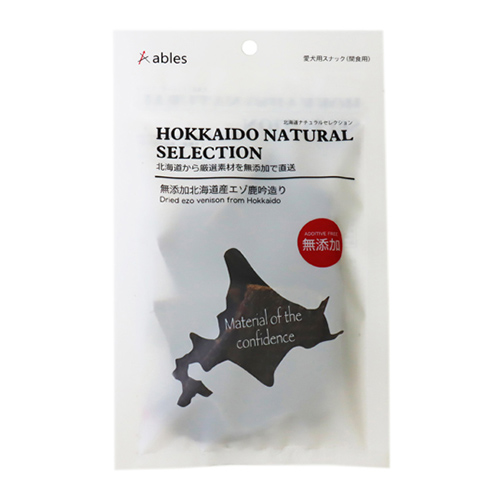 【原材料】エゾ鹿肉【使用方法】パッケージの表を目安に愛犬の大きさ、健康状態、年齢、運動量、妊娠期などを考慮し、食べ残しや便の様子をみながら1日2−3回に分けてお与えください。生後3カ月未満の幼犬には与えないでください。愛犬の食べ方や習性によって喉に詰まらせることがありますのでご注意してください。与えすぎには注意してください。【使用上の注意】品質保持のため脱酸素剤を封入しておりますが、これは食べられません。手に持って与える場合は、かまれないようにご注意ください。子供が誤飲しないように、子供の手の届かない所に保管してください。子供がペットに与える時は、安全のため大人が監視してください。商品には万全を期しておりますが、万一製品にお気づきの点がございましたら、お買い求めの年月日と店名をお書き添えの上、現品を袋ごと販売者までお送りください。代替品と送料をお送りいたします。【保存方法】開封前:直射日光、高温多湿を避けて保存して下さい。開封後、冷蔵庫で保管し、賞味期限にかかわらず早く与えて下さい。●生産国:日本