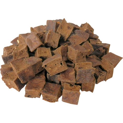 国産無添加のまぐろを一口サイズの角切りに形成した食べやすいおやつ。まぐろの脂にはαリノレン酸やDHA・EPAなどオメガ3系の脂が豊富で、ご褒美用おやつやフードのトッピングにも最適。小型〜中型犬向き。