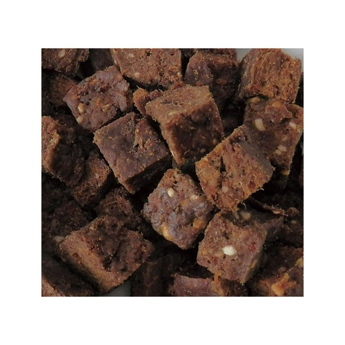 国産無添加の馬肉と嗜好性が高いチーズを一口サイズの角切りに形成した食べやすいおやつ。馬肉は高タンパク、低脂肪、低カロリーで、ご褒美用おやつやフードのトッピングにも最適。小型〜中型犬向き。