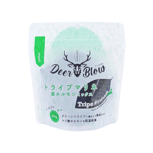 犬の本能を刺激するトライプと新鮮なエゾ鹿ホルモンのマリアージュは、愛犬を大喜びさせてくれます。