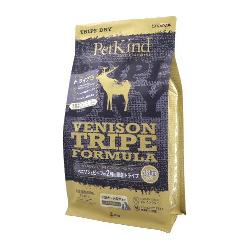 ベニソントライプ、ビーフトライプ、赤レンズ豆、豚脂肪(混合トコフェロールによる保存処理)、鹿肉、緑レンズ豆、エンドウ豆、グリーンピース、エンドウ豆タンパク、牛肉、ヒヨコマメ、エンドウ豆澱粉、亜麻仁、魚油(混合トコフェロールによる保存処理)、カボチャ、ホウレンソウ、にんじん、ブロッコリー、クランベリー、リンゴ、ブルーベリー、バナナ、ナチュラルフレーバー、亜鉛タンパク化合物、鉄タンパク化合物、銅タンパク化合物、マンガンタンパク化合物、ビタミンA、ビタミン D3、ビタミン B12、ビタミンE、ナイアシン、リボフラビン、硝酸チアミン、塩化ピリドキシン、葉酸、酸化マンガン、ヨウ素酸カルシウム、亜セレン酸ナトリウム、タウリン、炭酸カルシウム、塩化ナトリウム、塩化カリウム、塩化コリン、乾燥ラクトバチルス・アシドフィラス発酵物、乾燥ラクトバチルス・カゼイ発酵物、乾燥ビフィズス菌ビフィダム・サーモフィラム発酵物、乾燥ストレプトコッカス・フェシウム発酵物、ユッカシジケラ、ローズマリー、トウガラシ、ペパーミント、タイム、緑茶抽出物●生産国:カナダ