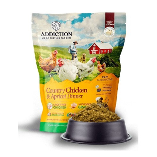 <原材料>鶏生肉、オーツ麦、ポテト、ニンジン、フラックスシード、ココナッツオイル、パパイヤ、アプリコット、クランベリー、ブルーベリー、マンゴー、アップル、バジル、ローズマリー、タイム、ペパーミント、ほうれん草、天然フレーバー、タピオカ、醸造用酵母、シーソルト、硫酸マグネシウム、塩化コリン、ビタミンA、ビタミンD3、ビタミンE、硝酸チアミン、リボフラビン、パントテン酸カルシウム、ナイアシン、塩酸ピリドキシン、葉酸、ビタミンB12、硫酸第一鉄、硫酸銅、硫酸マンガン、硫酸亜鉛、ヨウ素酸カルシウム、亜セレン酸ナトリウム、硫酸コバルト、タウリン、緑茶エキス、ローズマリーエキス、スペアミントエキス、酸化防止剤(ミックストコフェロール)