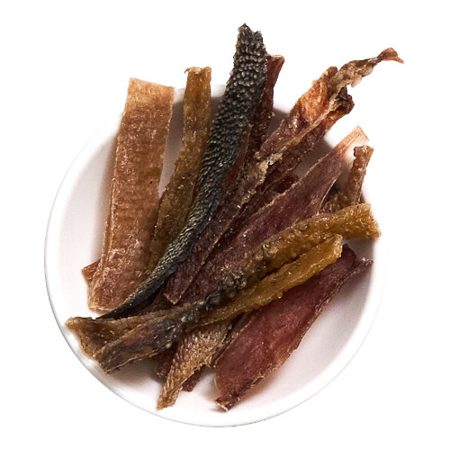 牛たんの皮を乾燥させた無添加ジャーキーです。美味しい香りとパリパリ食感がやみつきです。高タンパク・低脂肪・コラーゲン豊富なのでダイエット中のわんちゃんに安心です。小型犬や歯の弱いシニア犬が食べやすいように細くスライスしました。