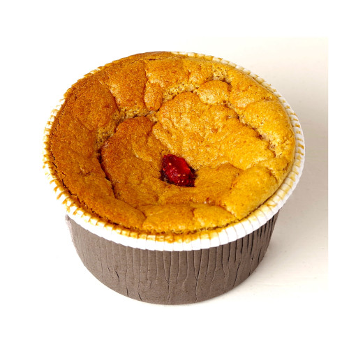甘酒の自然な甘さともちもちした米粉の食感の無添加シフォンケーキ。砂糖・塩・添加物不使用(メレンゲを作るために少量の甜菜糖使用)。程よい酸味のいちご味。