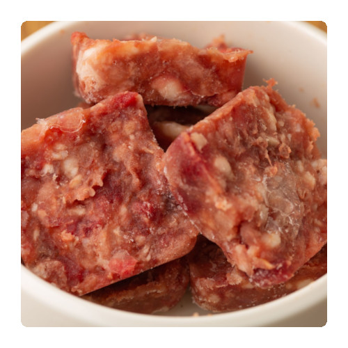日本3大地鶏「比内地鶏のささみミンチに肝や軟骨を加えたバランス食。加熱して与えてください。