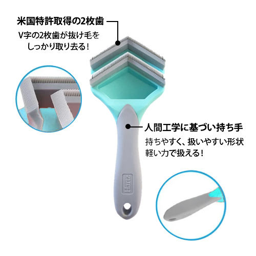 米国特許取得のV字ブラシがアンダーコートをしっかり取り去ります。
