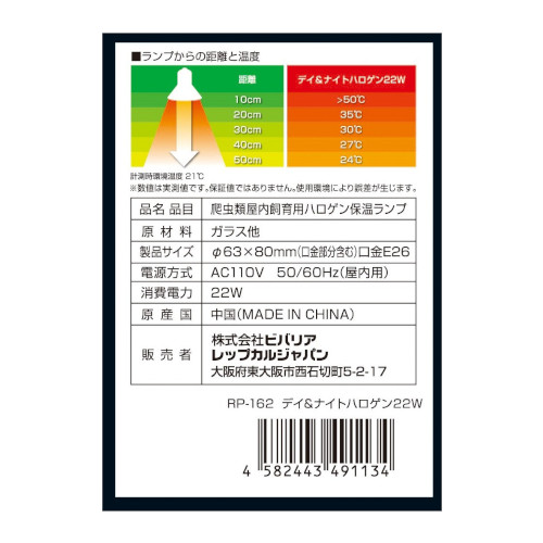 デイ&ナイトハロゲン22W:一般的な保温ランプ50W相当