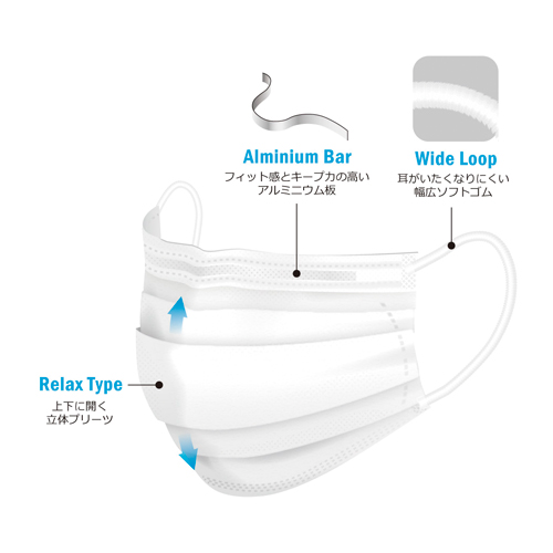 ノーズピース:アルミニウム板、イヤーループ:伸縮性ポリエステル