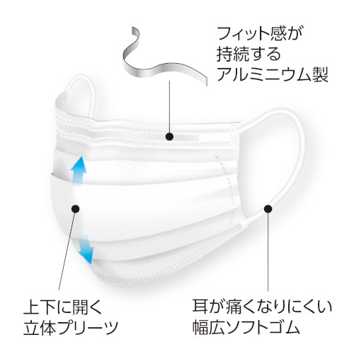 ●JIS T 9001 医療?マスク クラスT適合マスクで、上下に開く立体プリーツなので、口元が快適です。