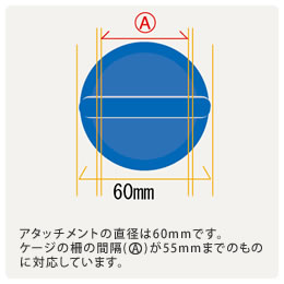 ケージの柵の間隔が55mm(図A幅参照)までのものに対応しています。
