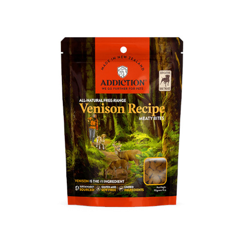 ●原材料: 鹿生肉、ポテト、植物性グリセリン、エンドウ豆、ココナッツオイル、タピオカ、ナチュラルフレーバー、シーソルト、シトラスファイバー、緑茶エキス、ローズマリーエキス、スペアミントエキス、酸化防止剤(ミックストコフェロール)