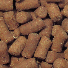 ●粗たんぱく質:35.0%以上、粗脂肪:16.0%以上、粗繊維:3.0%以下、粗灰分:7.5%以下、水分:10.0%以下、代謝エネルギー:365kcal以上/100g