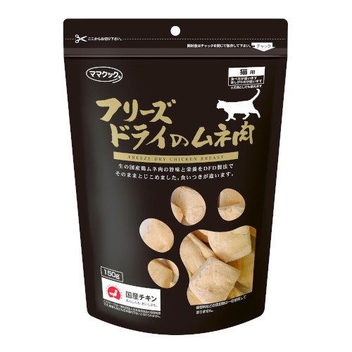 ●鶏ムネ肉は高タンパク、低脂質。ササミよりも脂質の香りが強く、食欲をそそります。飽きないようにササミと交互に与えるのがおすすめです。素材のままの味、香り、栄養を損なわないのは弊社独自のフリーズドライの特徴です。原材料調達から加工・包装まで、全て国内で行っておりますので安心してご利用ください。