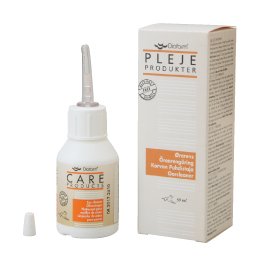 ボトルを押して5-10滴ぐらい耳の中に注入します。犬が頭を振る前に、耳の付け根をやさしくマッサージしてください。その後柔らかい布やティッシュで残った汚れを拭き取ってください。