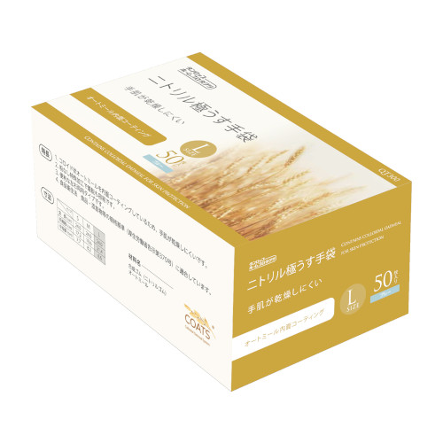 QT300 ニトリル極うす手袋オートミール内面コーティング 50枚入