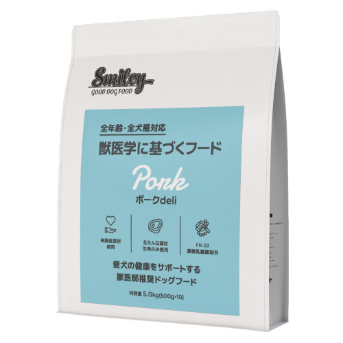 豊富なビタミンB1、不飽和脂肪酸(オレイン酸)、カルニチン、ナイアシンなど多くの栄養素を持つ豚生肉使用で愛犬の健康な体型、皮膚被毛の維持