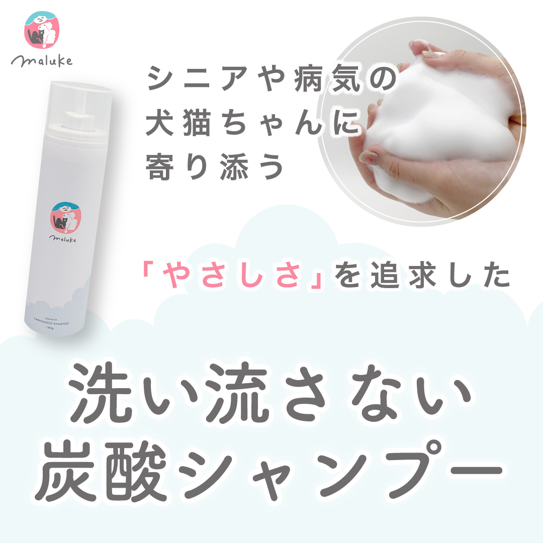 シニアや病気で入浴がむずかしい犬猫ちゃんに寄り添う、『やさしさを追求した』洗い流さない炭酸シャンプーです。