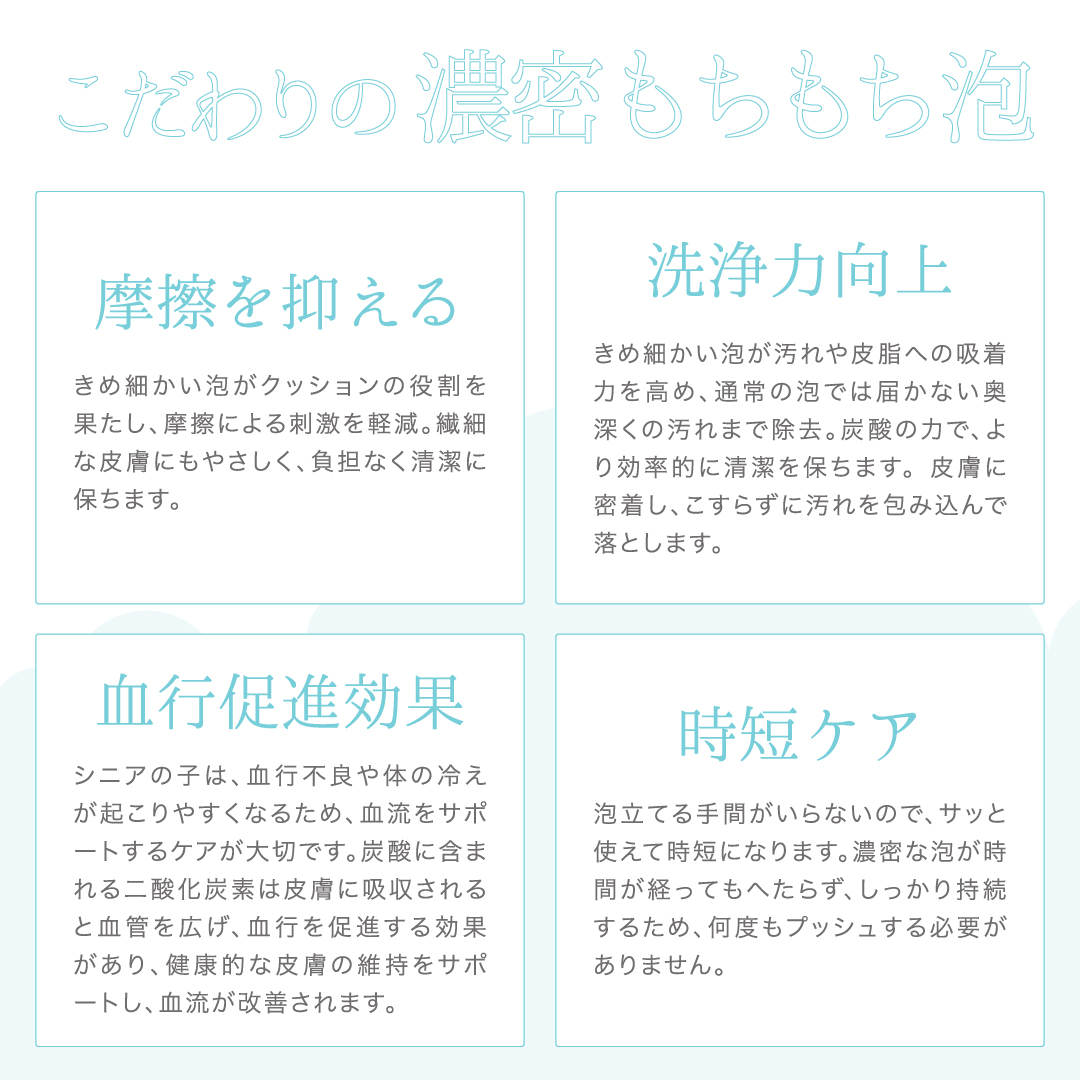 ・ワンプッシュで濃密もちもち泡泡立て不要で時短お手入れ。
