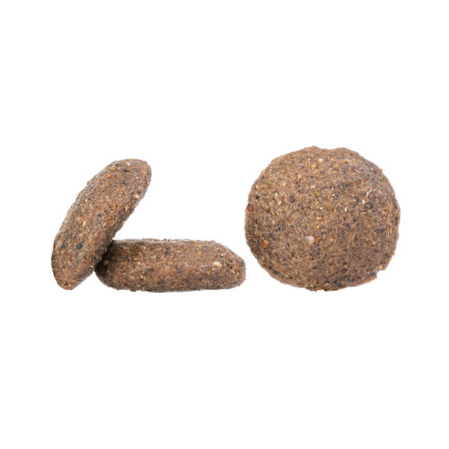 ●原材料:ダックプロテイン(26%)*、イタリア産栗(26%)、えんどう豆スターチ、ポルトリー脂肪、ビートファイバー*、フィッシュミール(4%)、加水分解レバー、ひまわり油、亜麻仁(1.3%)、アップルポマス*(1.2%)、塩化カリウム、菜種油、サッカロマイセス・セレビシエ*、塩化ナトリウム、海藻*、ミルクシスル、アーティチョーク、タンポポ、ショウガ、カンバ葉、ネトル、カモミール、コリアンダー、ローズマリー、セージ、リコリス根、タイム(ハーブ:0.15%)*、緑イ貝*(0.1%)、イースト抽出物*、ビタミン類(ビタミンA、ビタミンD3、ビタミンE、ビタミンB1、ビタミンB2、ビタミンB6、ビオチン、Dパントテン酸カルシウム、ナイアシン、ビタミンB12、コリン、葉酸)、ミネラル類(鉄、銅、亜鉛、マンガン、ヨウ素酸カルシウム、亜セレン酸ナトリウム)、天然由来トコフェロール(酸化防止剤として) (*乾燥)