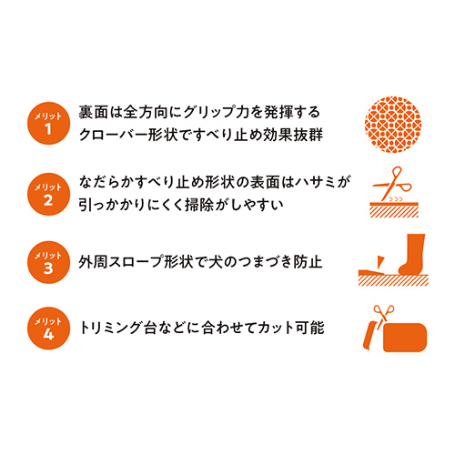 ●裏面は全方向にグリップ力を発揮するクローバー形状ですべり止め効果抜群
