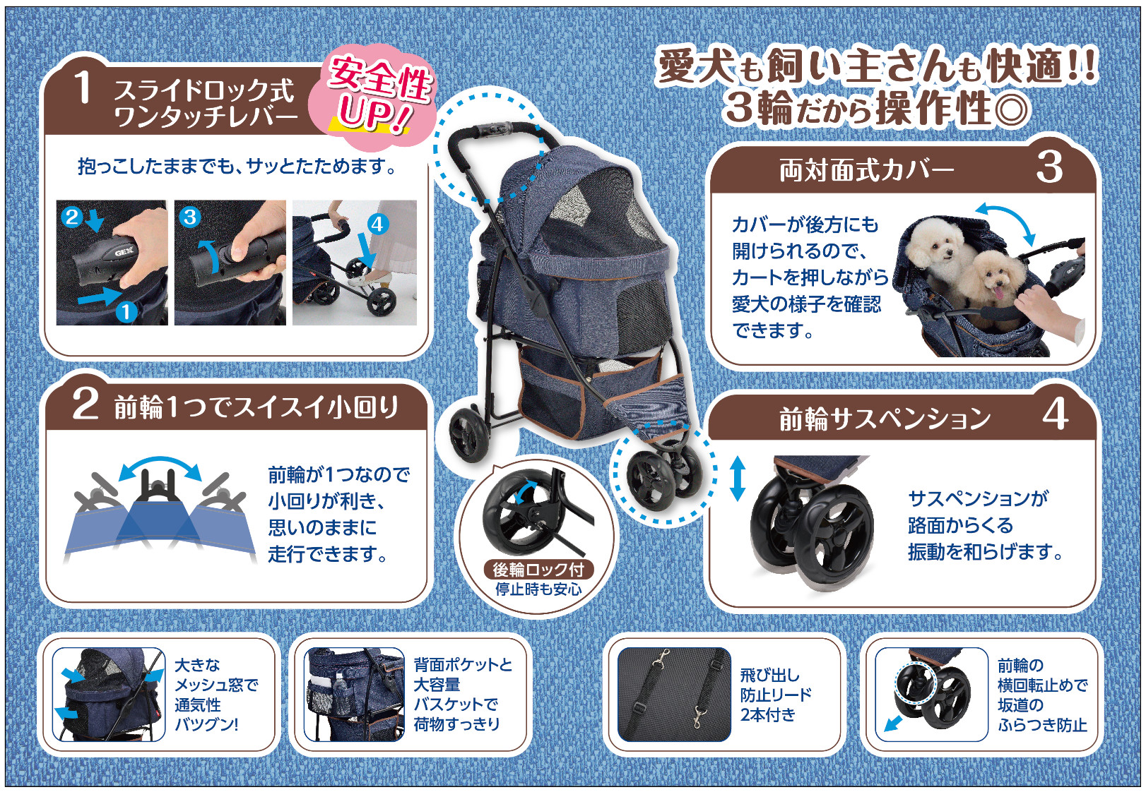 わんわんカート スマートハンディ Safety デニム柄