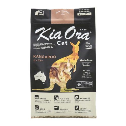 【原材料】カンガルー生肉、ドライフィッシュ、えんどう豆、タピオカスターチ、鶏脂、全粒亜麻仁、乾燥カンガルー、天然フレーバー、キャノーラ油、ビネガー、ミネラル類(塩化ナトリウム、塩化カリウム、炭酸カルシウム、硫酸亜鉛、硫酸鉄、硫酸銅、硫酸マンガン、亜セレン酸ナトリウム、硫酸コバルト、ヨウ素酸カルシウム)、ビタミン類(塩化コリン、ナイアシン(ビタミンB3)、ビタミンEサプリメント、パントテン酸カルシウム(ビタミンB5)、リボフラビンサプリメント、チアミン硝酸塩(ビタミンB1)、塩酸ピリドキシン(ビタミンB6)、ビタミンAサプリメント、ビオチン、ビタミンB12サプリメント、葉酸(ビタミンB9)、ビタミンK1サプリメント、ビタミンD3サプリメント)、タウリン、酸化防止剤(天然ミックストコフェロール、クエン酸、ローズマリー抽出物、グリーンティ抽出物、スペアミント抽出物)