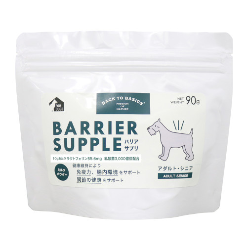 ●成犬とシニア犬の成長と健康維持のために。健全な免疫力の維持と腸内環境をサポートするために、「乳酸菌(EC-12)」「βグルカン(アガリクス茸エキス)」「ラクトフェリン」を配合したパウダータイプのサプリメントです。関節の健康をサポートするために必要な「グルコサミン」「コンドロイチン」「ヒアルロン酸」を配合しています。