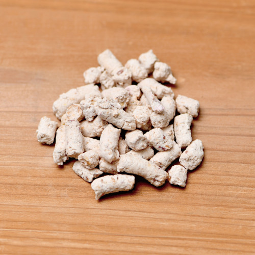●ふじりんご果肉にさつまいも、果肉入り無添加クランベリージュースを混ぜこみ焼き上げた自然派トリーツ。