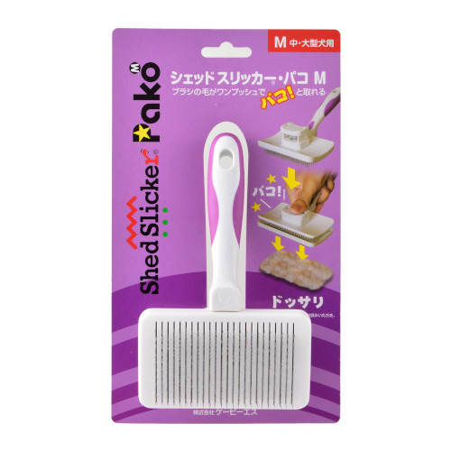 ブラシの毛がワンプッシュでパコっと取れるスリッカーブラシ