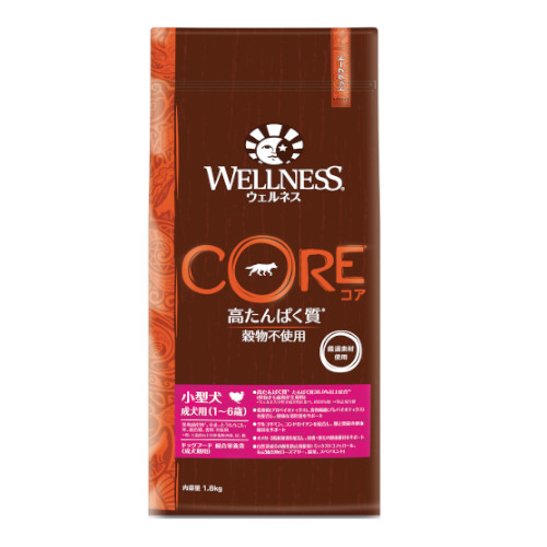 ●高たんぱく質*:たんぱく質36.0%以上配合(保証成分値)*ウェルネス穀物不使用小型犬1歳以上用と比べ、たんぱく質約12%増。