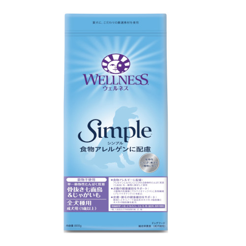 《ウェルネスシンプルシリーズは、動物性たんぱく質源を1種類に限定し、原材料の種類を極力少なくすることで、食物アレルギーに配慮した製品です》