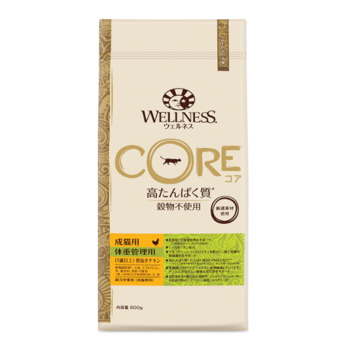 《ウェルネスコアシリーズは、猫は真の肉食であるという考えをもとに作られました。高品質の生肉・生魚が第一原材料です。抗酸化栄養素が豊富な野菜や果物も配合し、バランスのとれた栄養で愛猫の健康をサポートします》