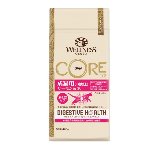 《ウェルネスコアダイジェスティブヘルスは、犬猫の祖先は肉食であるという栄養学的哲学をもとに、消化に優れた原材料を厳選し、高消化性に設計された消化管の健康に配慮した製品です。お腹の健康維持をサポートします。水溶性食物繊維を含む大麦(穀物)を配合》