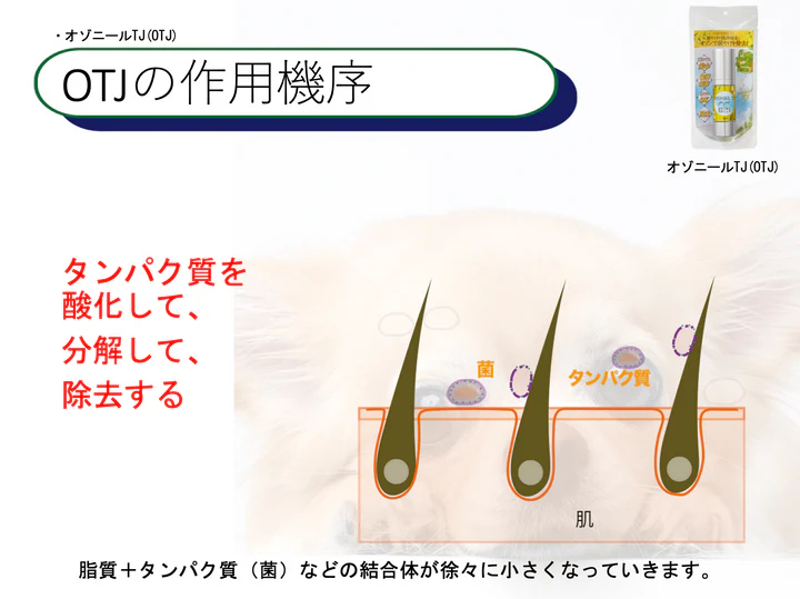 ●オゾンの力で涙やけ成分の細菌や固くなった部分を分解し、消臭除菌をすることが可能です。