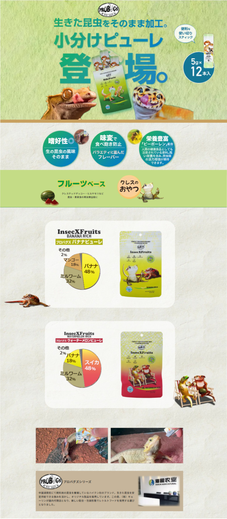 ●対象:レオパードゲッコー、フトアゴヒゲトカゲなど昆虫食爬虫類。
