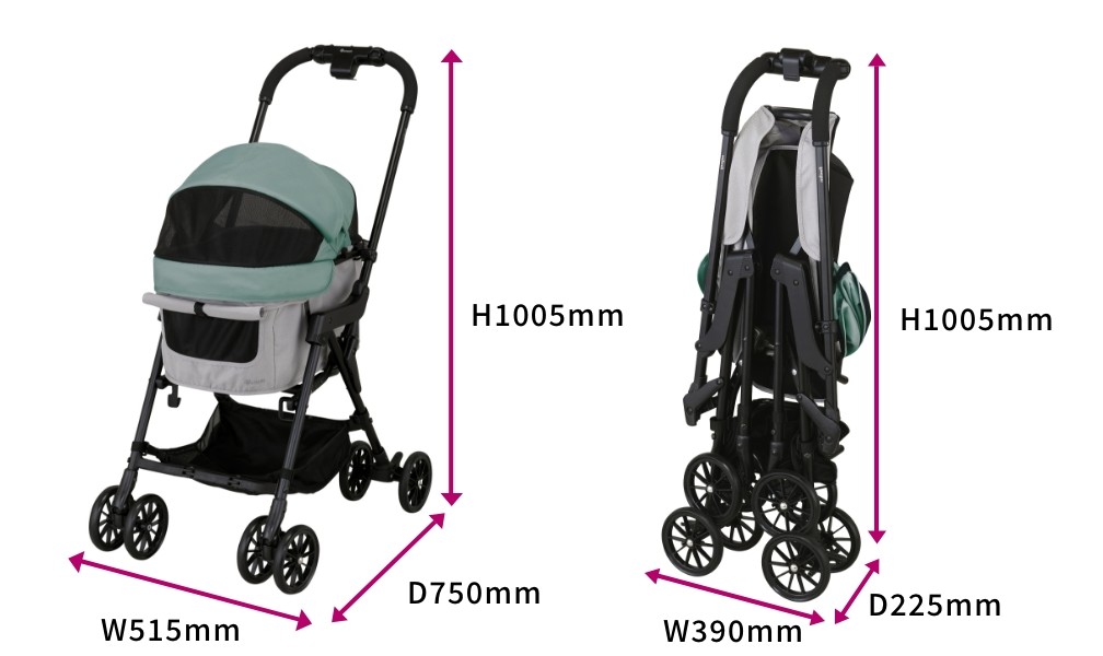 ●片手でラクラク押せる軽快さと、持っても4.3kgの軽量設計。女性がお出かけする際、階段などでも困らないうれしい軽量設計のペットカートです!