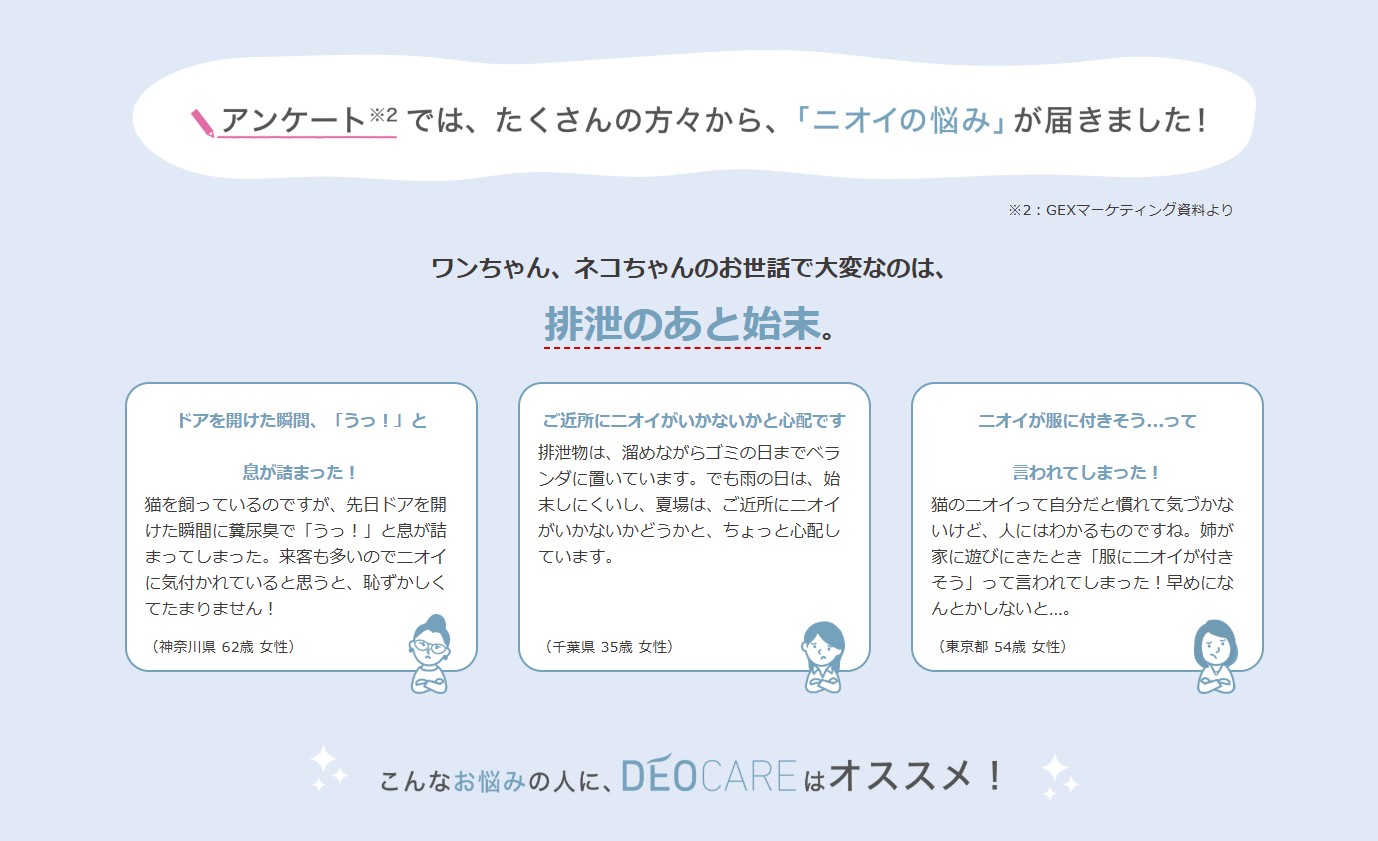 ●ペットの糞尿臭の原因になる悪臭(尿などのニオイ:アンモニア、糞便のニオイ:インドール、腐った卵のニオイ:硫化水素、腐った魚のニオイ:トリメチルアミン)を化学のちからですばやく消臭!