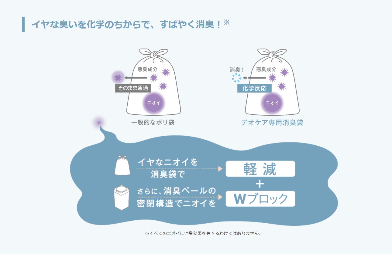 ●消臭成分を練りこんだ特殊構造の袋が、気になるニオイを分解。