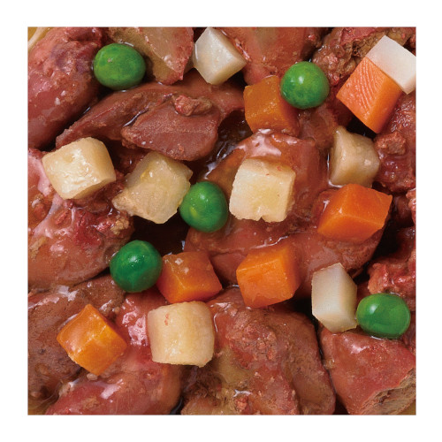 ●【原材料】鶏内臓、じゃがいも、人参、グリンピース、食塩、まいたけ粉末、増粘安定剤(増粘多糖類)、発色剤(亜硝酸Na)