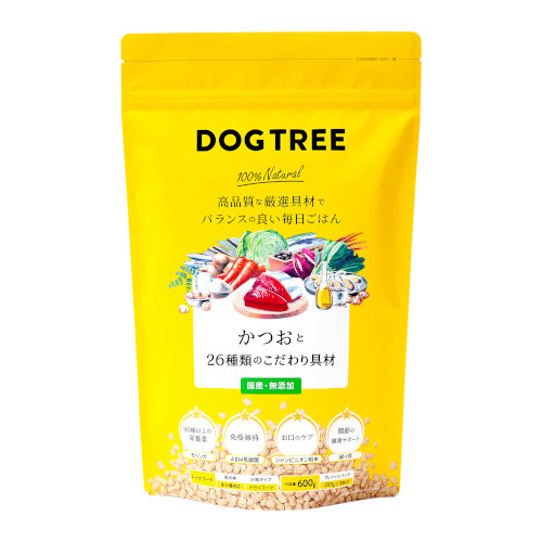 本カツオ、米粉、玄米粉、野菜類(じゃがいも・さつま芋・ごぼう・きゃべつ・人参・小松菜)、イワシ、大豆(遺伝子組換えでない)、おから(遺伝子組換えでない)、米ぬか、有機黒糖、黒豆、サバ、卵殻カルシウム、りんご皮、モリンガ、亜麻仁油粉末、干し椎茸、アジ、米麹、昆布、緑イ貝、ABM乳酸菌、シャンピニオン粉末