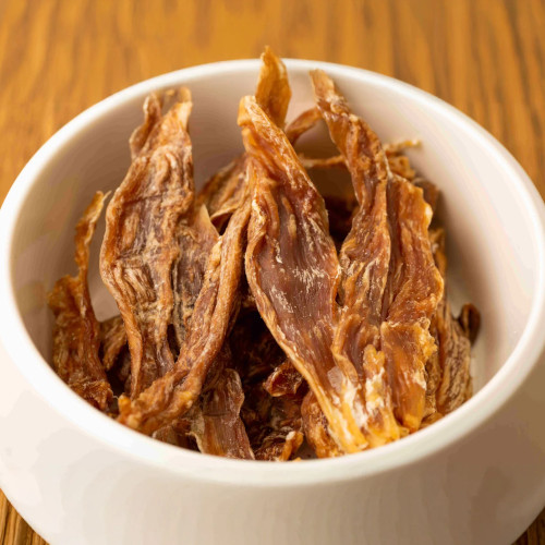 ●手で裂けるので老犬にも食べやすいペット用ジャーキーでは珍しい、比内地鶏のもも肉は最も人に人気の部位です。