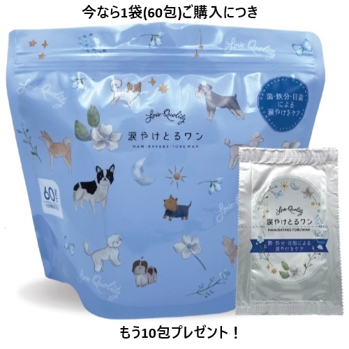 個包装を真ん中で割き、両側に入っている脱脂綿を取り出し、優しく目の周りを拭いてあげてください。朝晩の使用で毎日根気よくお使いください。