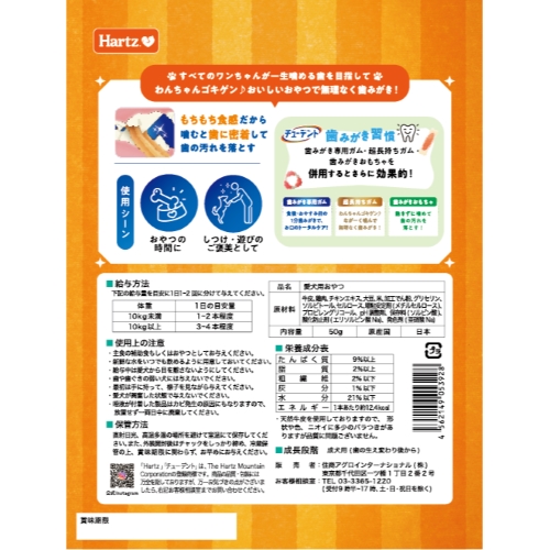 弾力のある食感でしっかり噛める“もちもち”食感の歯みがきおやつ。
