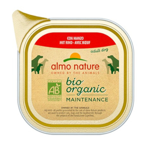 100%オーガニックミート(有機飼育された牛肉4%以上、有機飼育された豚肉、有機飼育された鶏肉、有機飼育された七面鳥)、コーンフレーク、植物性たんぱく質、ミネラル、ビタミンD3 231IU/kg、ビタミンE 444mg/kg、ビタミンB1 222mg/kg